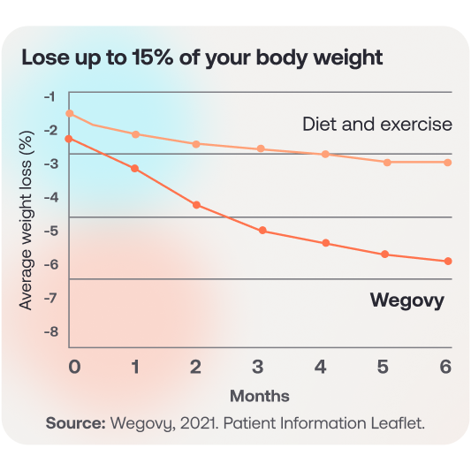 Wegovy is an injectable pen treatment for weight loss. When used alongside an improved diet and increased activity, it can help you steadily lose weight.